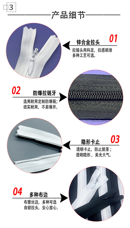 - Specification: White * 3# * Fabric Edge 25cm