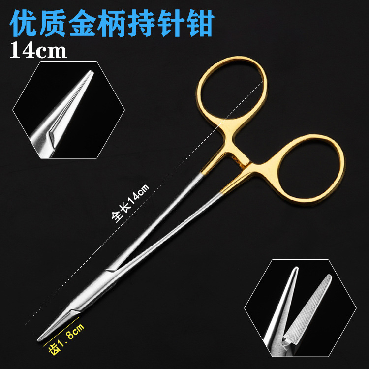 - Specification: High-quality Gold-handled Needle Holder 14cm
