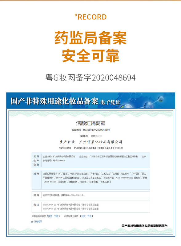 - Non-Special Purpose Cosmetic Filing Number: Yue G Zhuang Wang Bei Zi 2020048694
