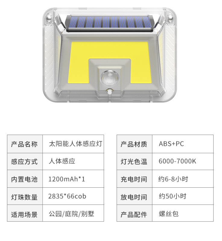 - Specification classification: 48 LED light COB (light goes off when people leave)