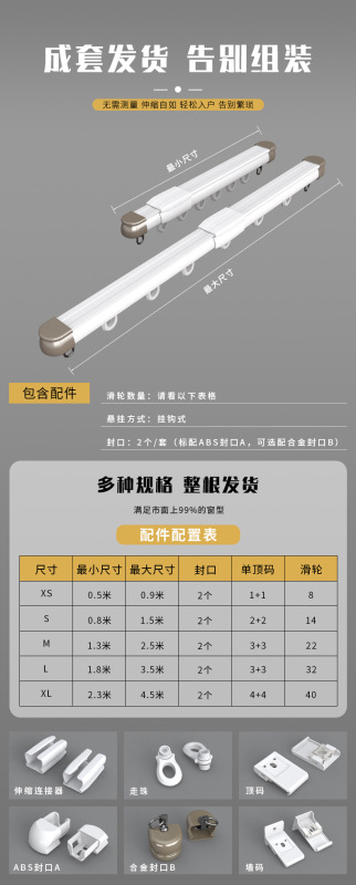 - Accessories: retractable curtain track
