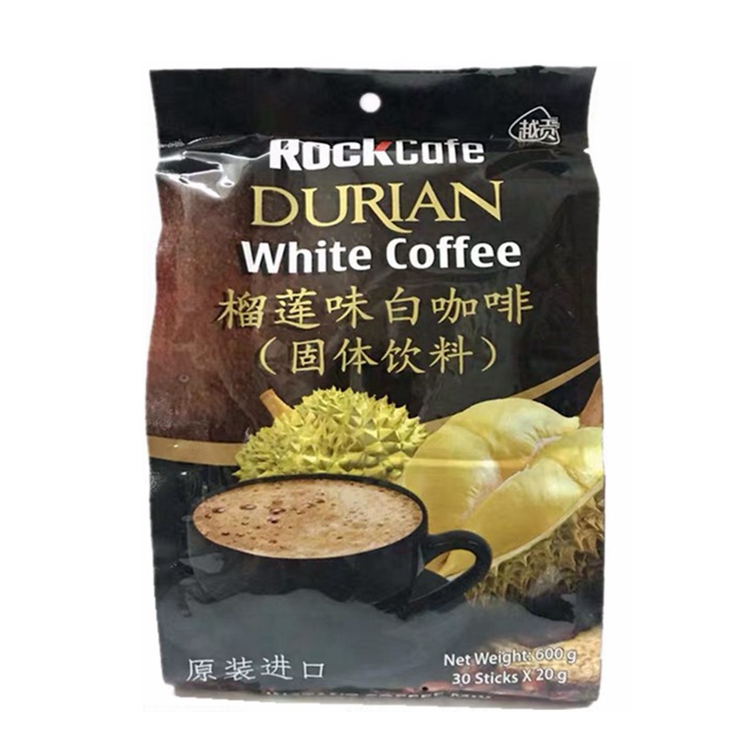 - Ingredients: Instant coffee powder, white sugar, durian/coconut, cocoa butter
