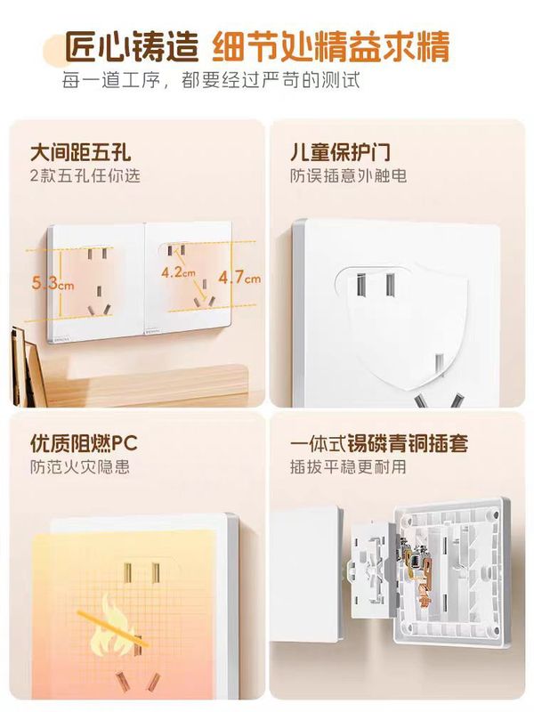- Model: Bright Velvet White Five-Pole Socket