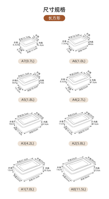 - Specifications: Rectangular A7 (capacity 0.7L)