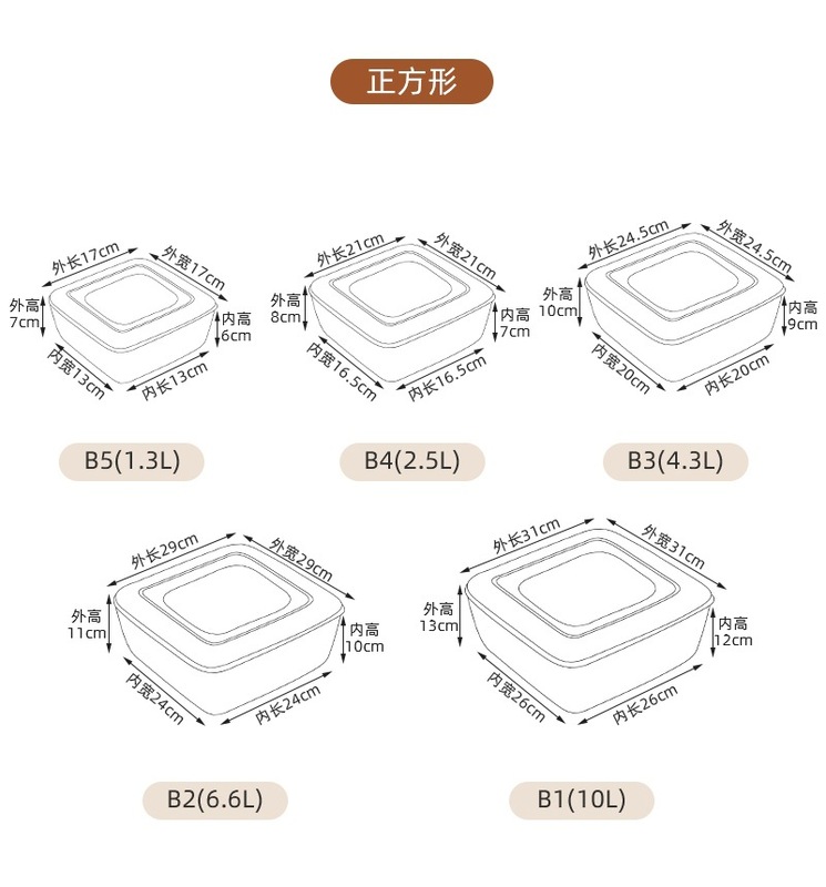 - Specifications: Square B4 (capacity 2.5L)