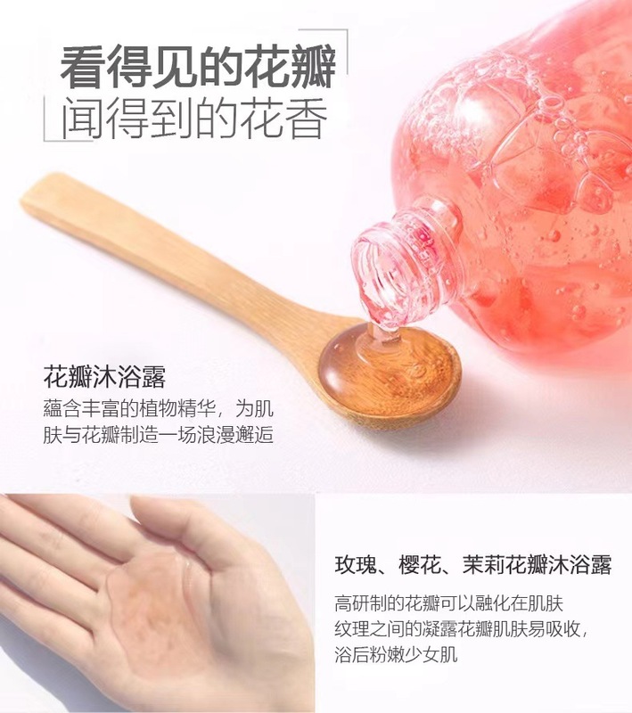 - 型號:櫻花花瓣沐浴露500ml,玫瑰花花瓣沐浴露500ml,茉莉花花瓣沐浴露500ml