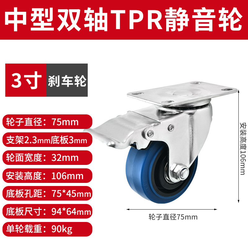 - Specifications and models: 3-inch blue brake wheel
