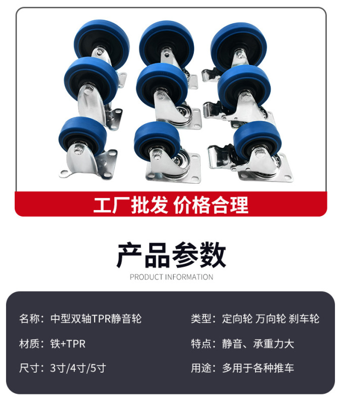 - Specifications and models: 5-inch blue brake wheel