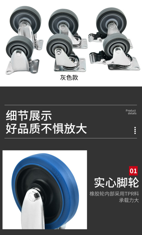 - Specifications and models: 4-inch gray brake wheel