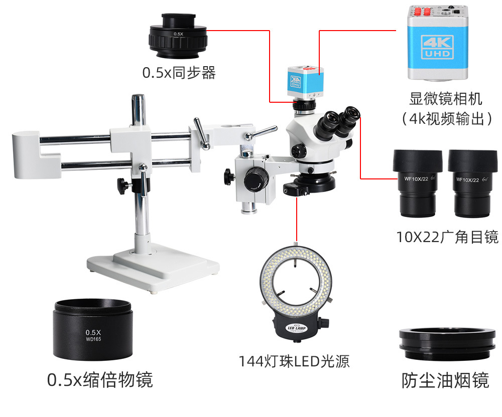 - Specifications: Two-arm trinocular + 4k camera