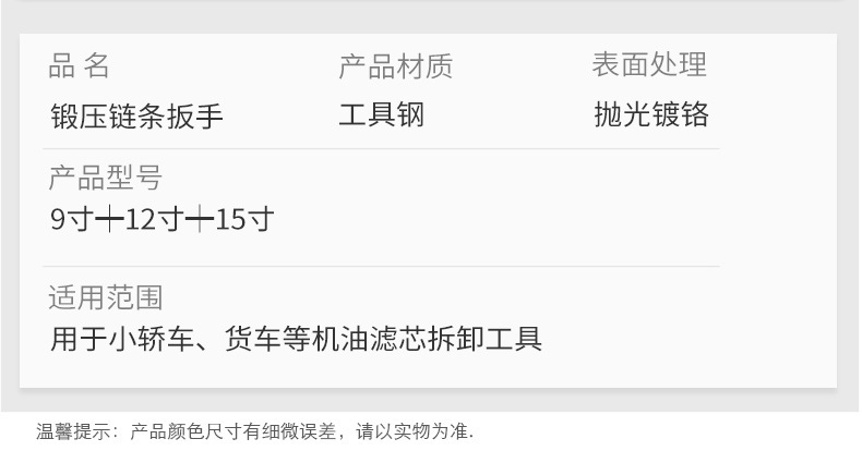 - 規格型號:9寸鍛壓鏈條扳手