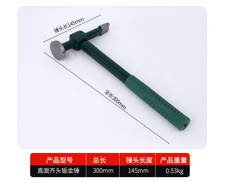 - Model: Straight-faced sheet metal hammer
