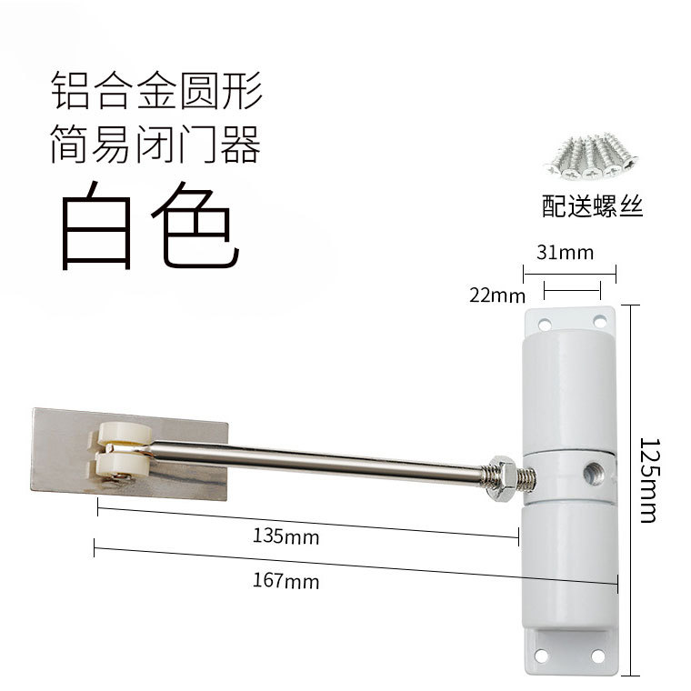 - Specifications: Aluminum alloy simple door closer round-white/only