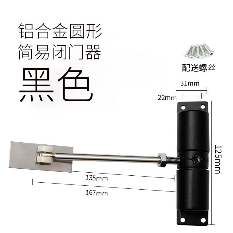 - Specifications: Aluminum alloy simple door closer round-black/only