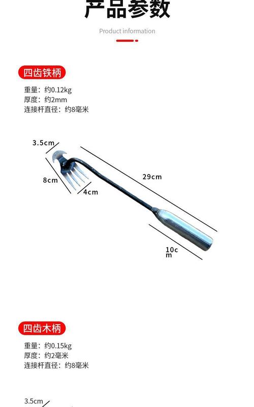 - Specifications: 4-tooth dual-purpose extended 40cm weeder (iron handle)