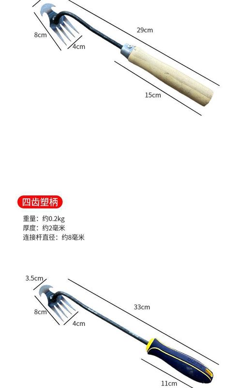 - Specifications: 4-tooth dual-purpose weed eater (wooden handle)