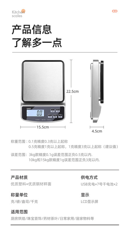 - Maximum weighing capacity: 15kg