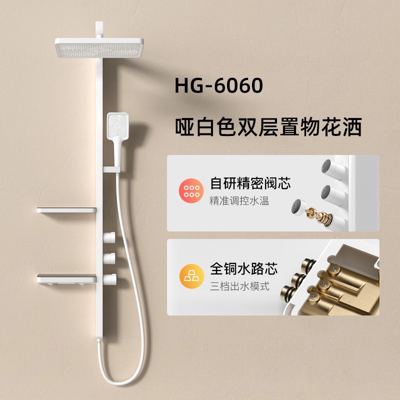 - Specification: Silent White Small Backpack Dual Tier Shelf Shower {Constant Temperature Model}