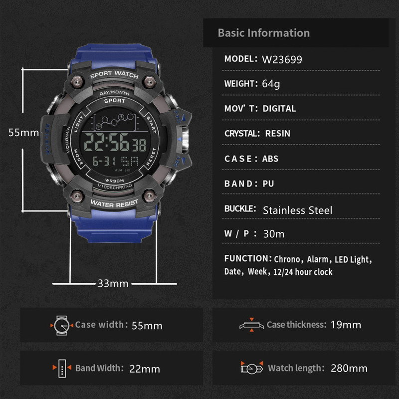 - Special Features: Stopwatch Alarm, Night Light, Date, Week, Water-Resistant for Daily Life