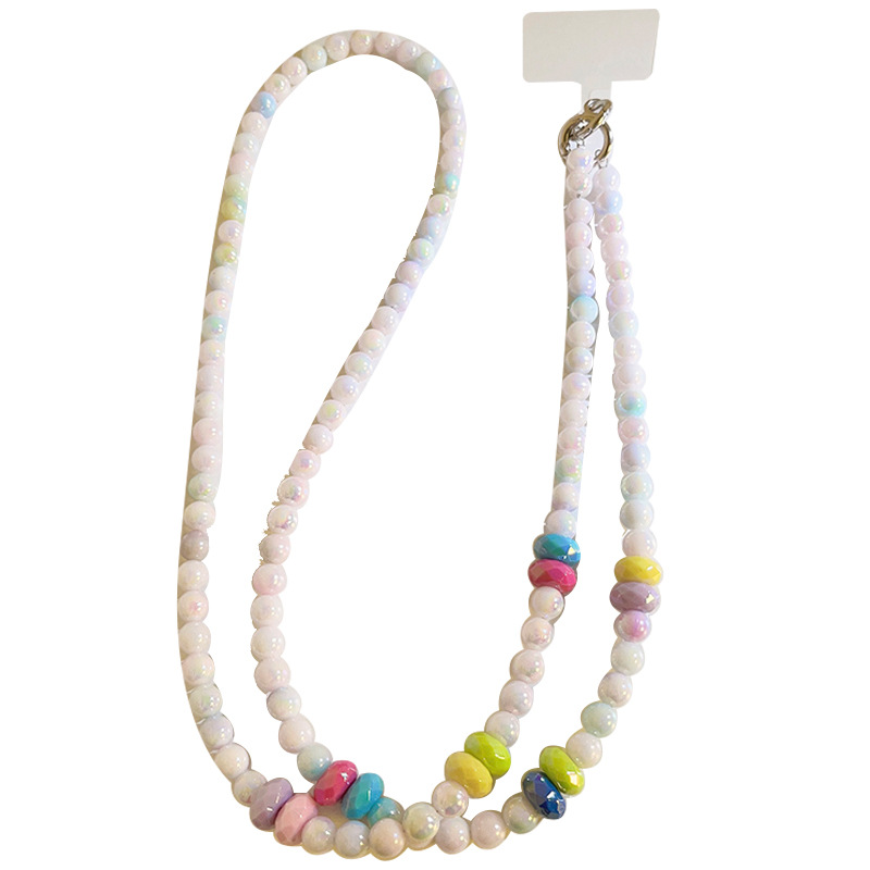 - 規格:彩色圓餅彩色仿貝珠斜跨長鏈