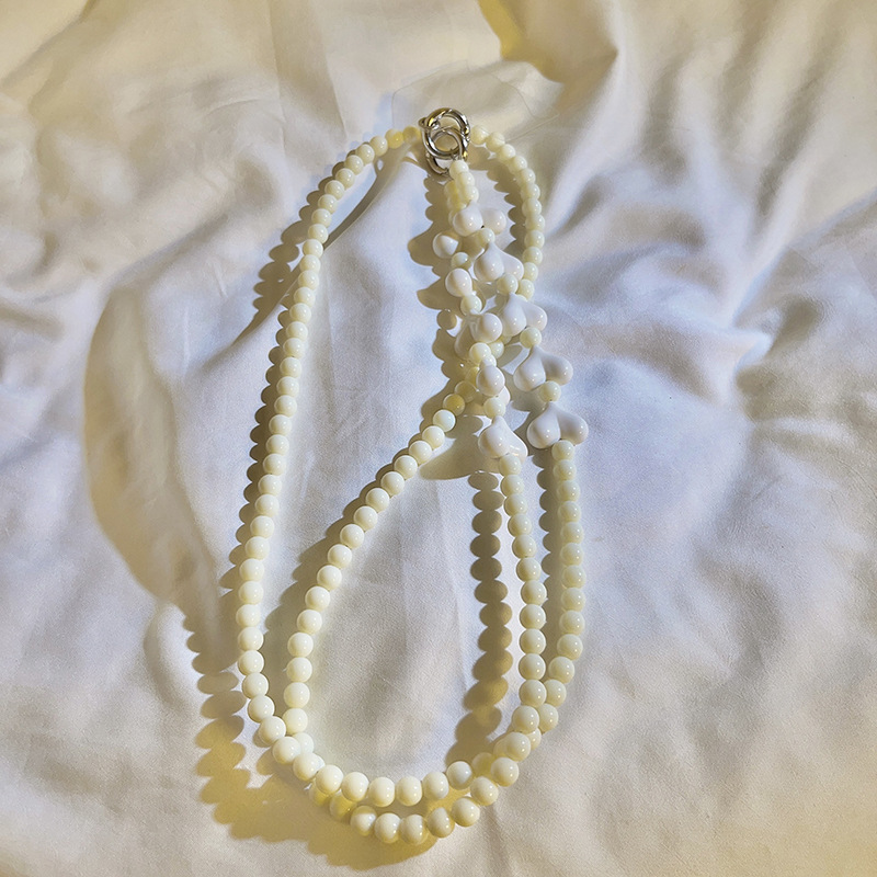 - Specifications: Milky white love beads diagonally across long chain