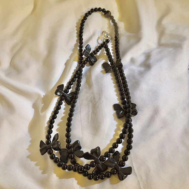 - Specifications: black bow beaded diagonal long chain