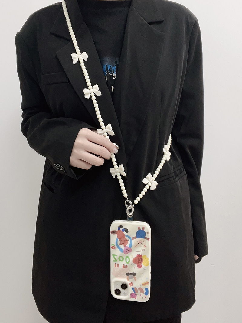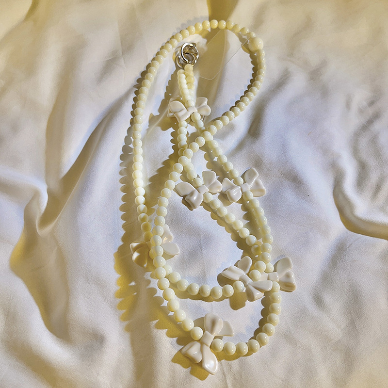- Specifications: Milky white bow beaded diagonal long chain
