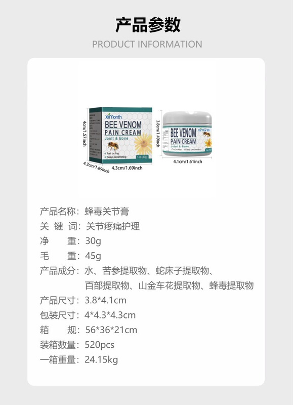 - 產品名稱:蜂毒關節膏