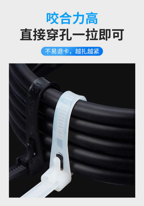- Specifications and models: 5*300 (width 4.8mm) 100 pieces; white; buckle ties (reusable)