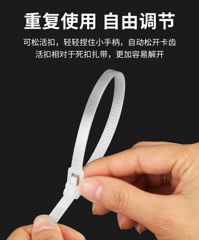 - Specifications and models: 5*200 (width 4.8mm) 100 pieces; white; buckle ties (reusable)