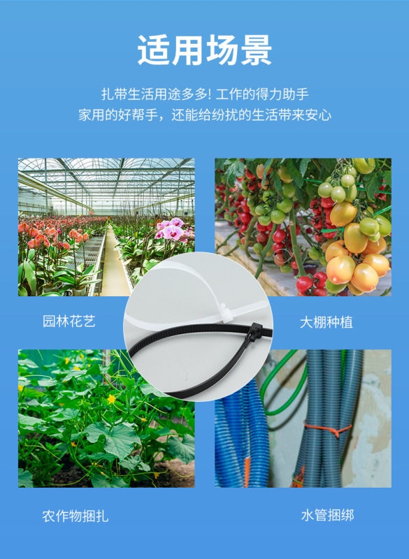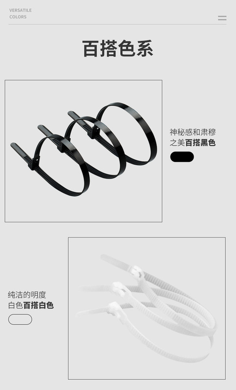 - Specifications and models: 8*300 (width 7.2mm) 100 pieces; white; buckle ties (reusable)