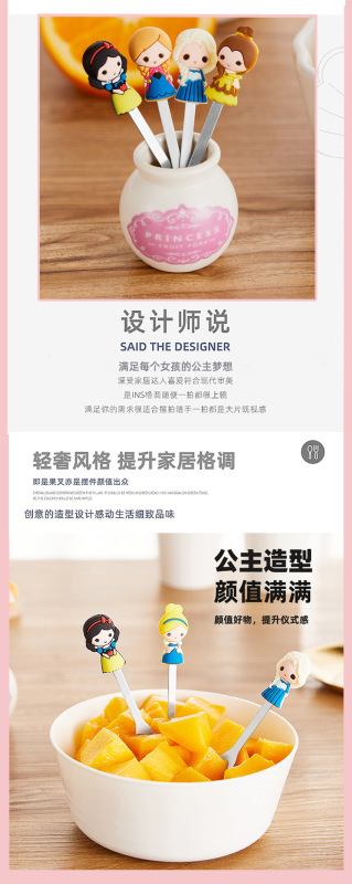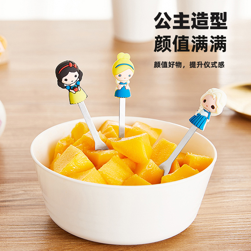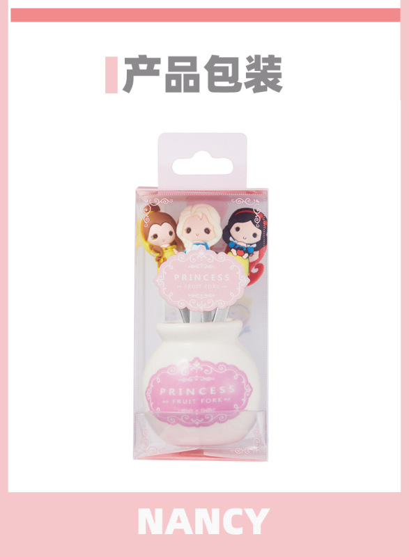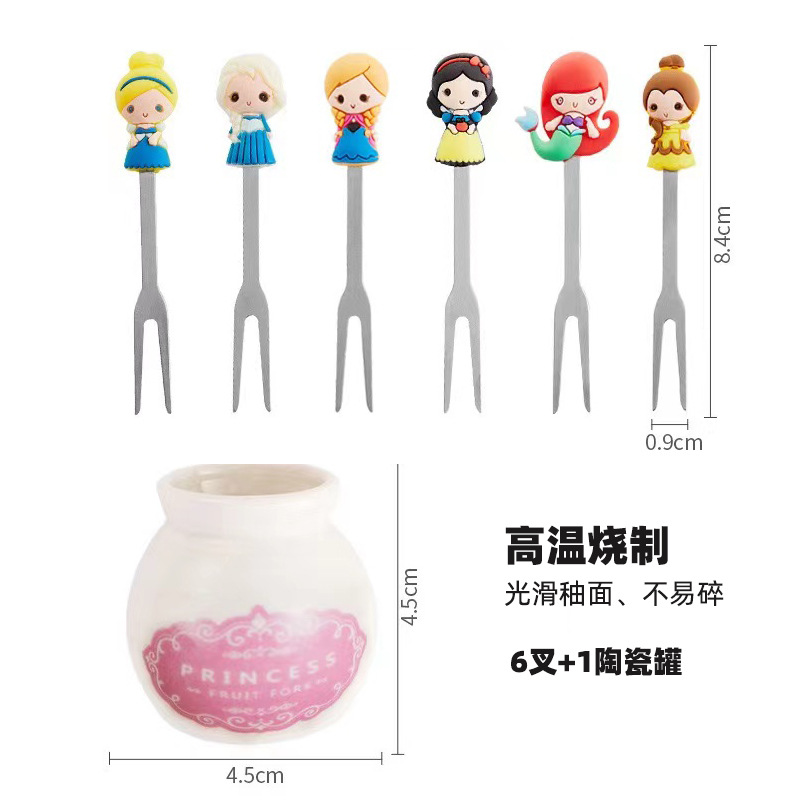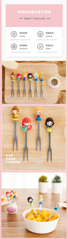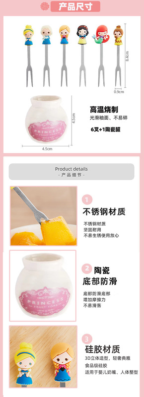 - 產品名稱:公主陶瓷硅膠叉子可愛家用水果叉兒童甜品蛋糕不鏽鋼水果叉套裝