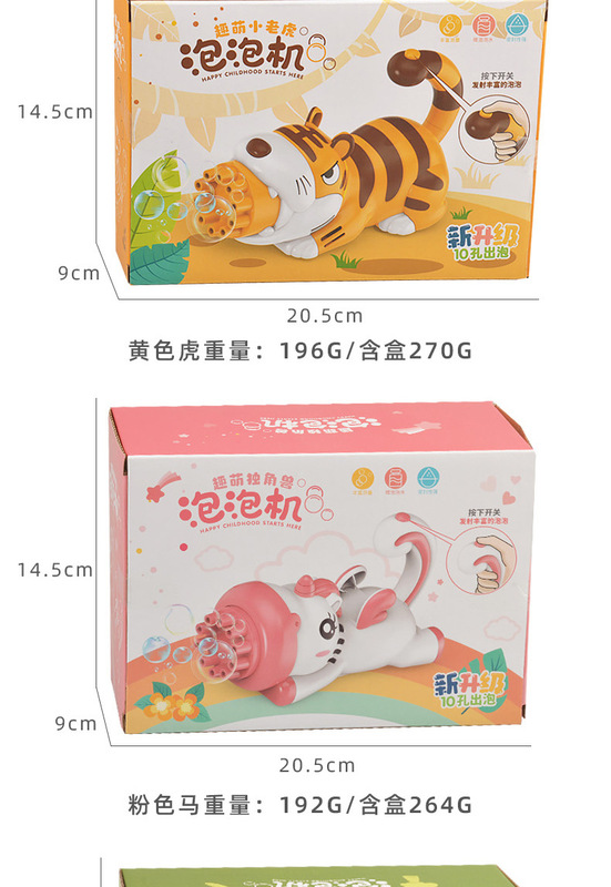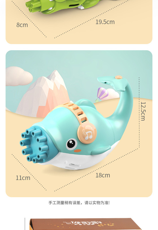- Function: Electric bubble blowing, musical lights, camera-shaped
