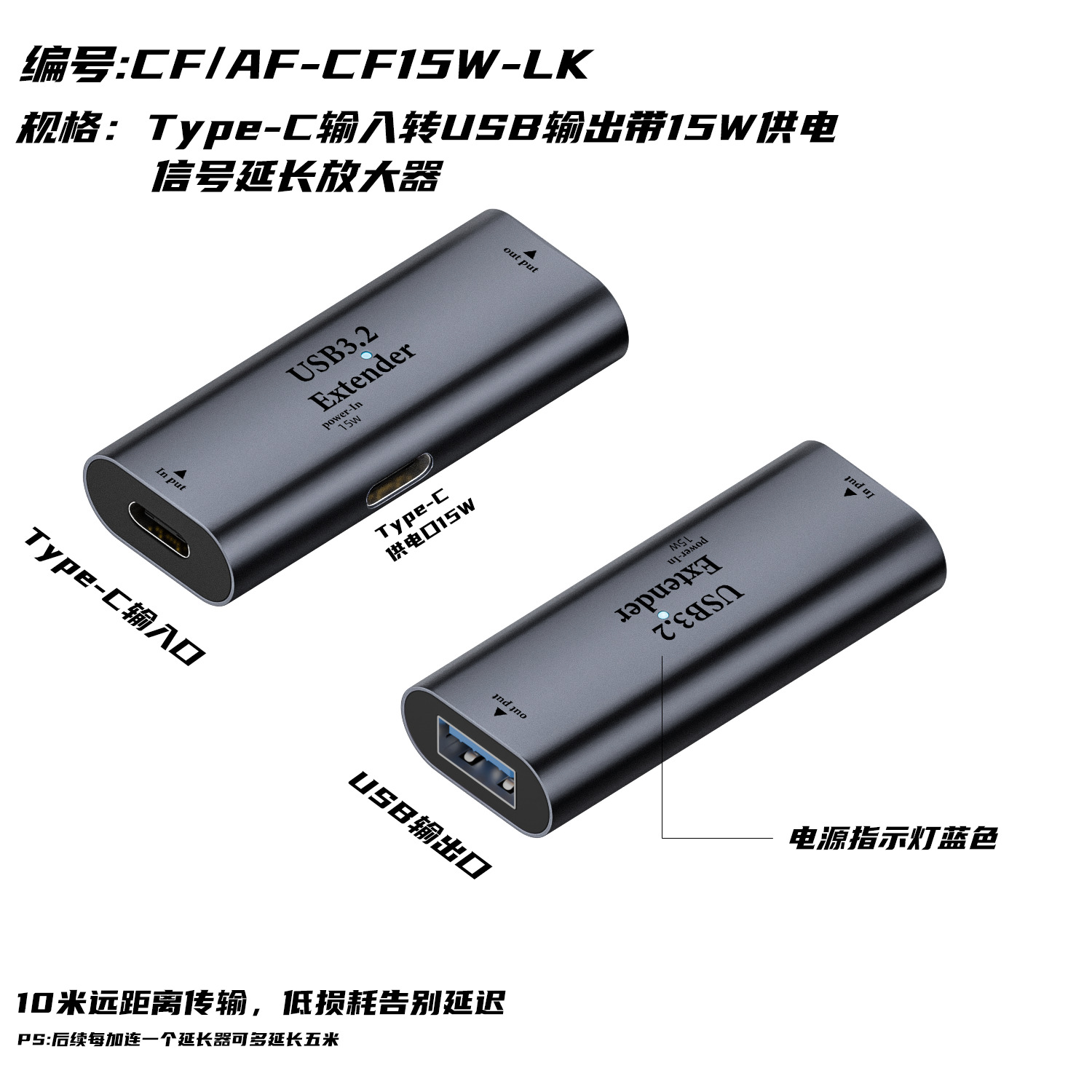 - 型號:USB轉Type-c信號放大器