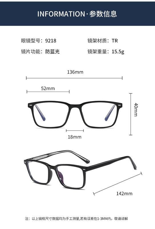 - 眼鏡款式:方框