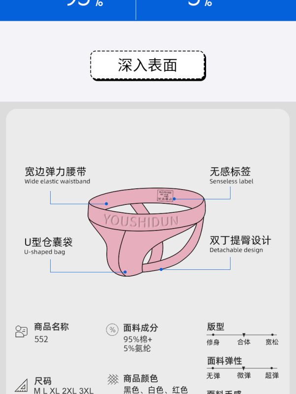 - Crotch lining ingredient content: 95% (inclusive) - (exclusive)