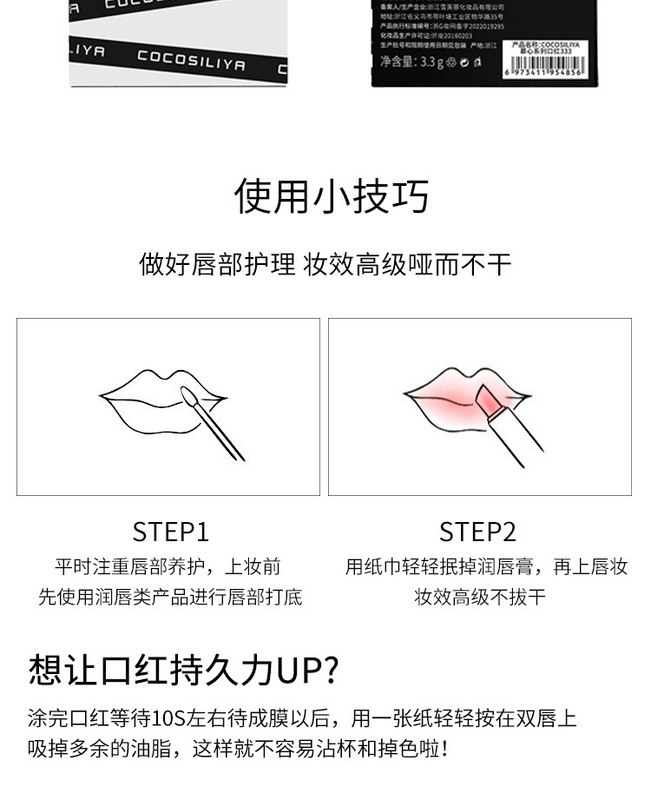 - Production License Number: Zhejiang Cosmetics 20180009