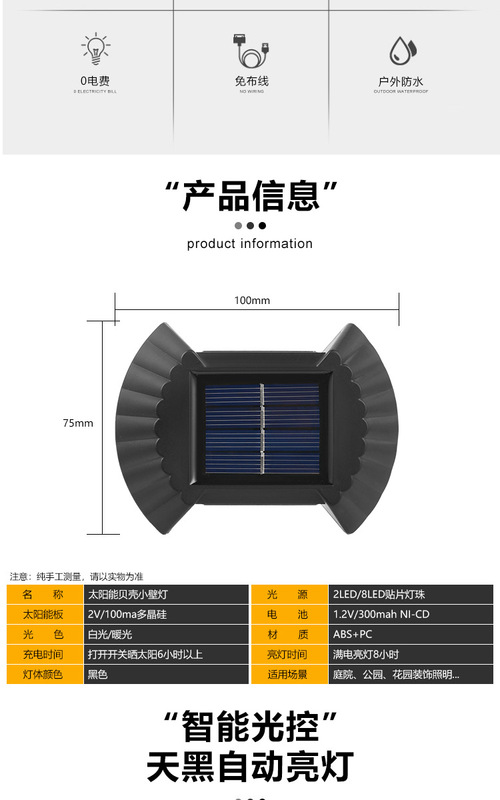 - Specification Category: 8LED Shell Wall Lamp [Warm Light]