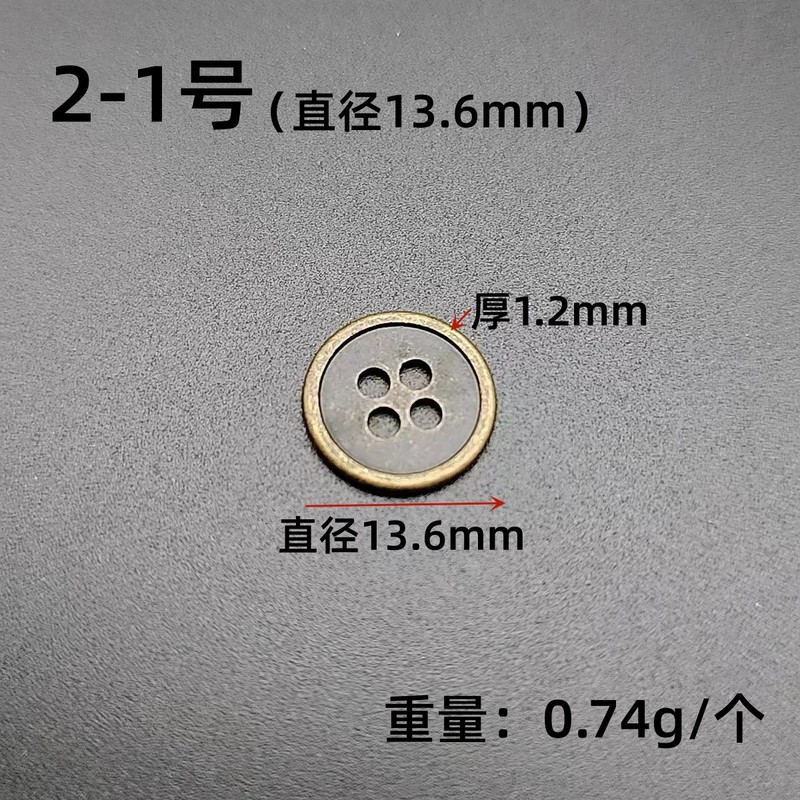- 規格型號:四眼紐扣*2-1號(直徑13.6mm)*青古銅色