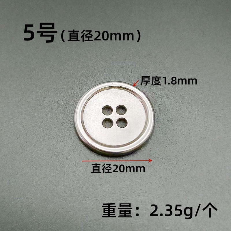 - 規格型號:四眼紐扣*5號(直徑20mm)*銀色