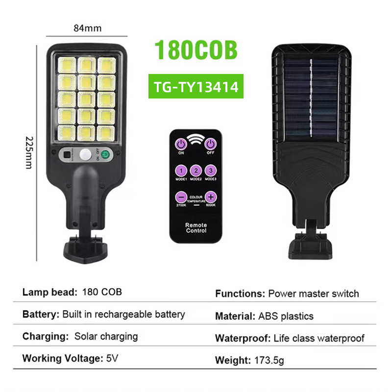 - Specification Category: Solar Wall Lamp 180 COB 15 Cells (TY13414)