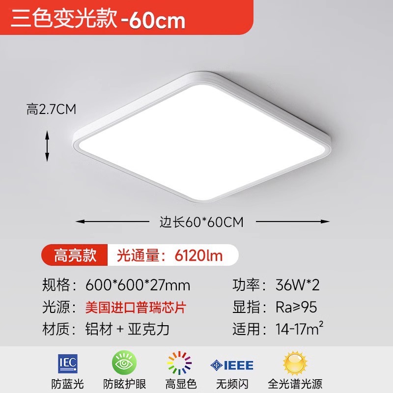 - 光源功率:【菱晶板普瑞芯片】60CM正方