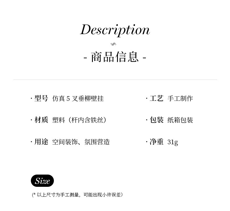 - Variety: Simulated 5-prong weeping willow leaf rattan
