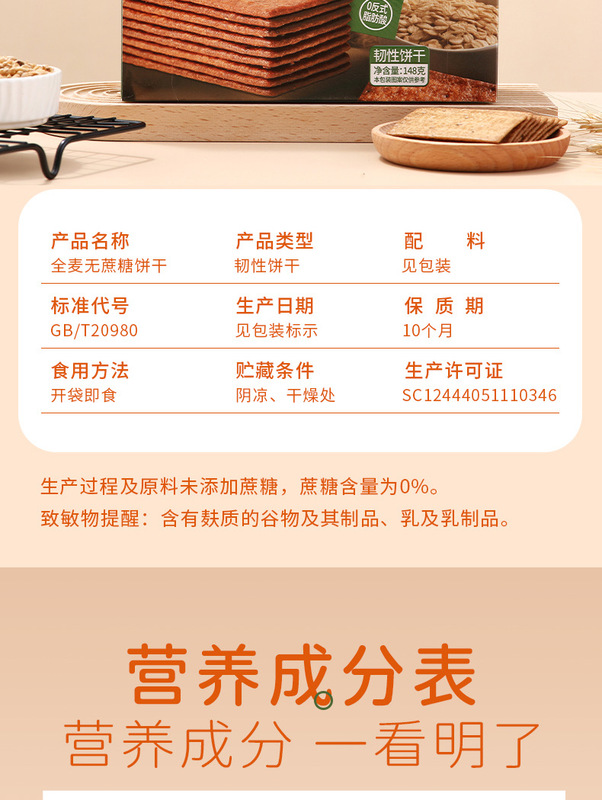- Packaging Specification: Whole Wheat No Added Sugar Biscuits - 148g/bag
