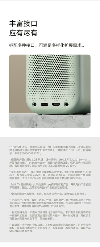 - 色彩:Redmi投影儀2綠色