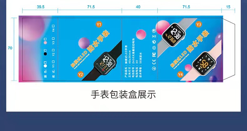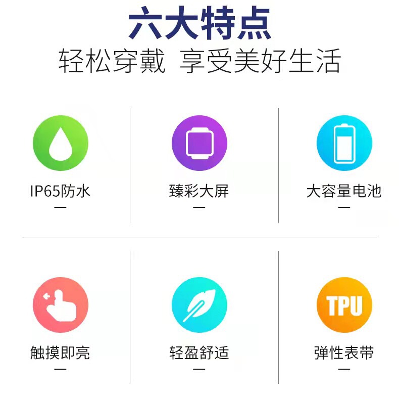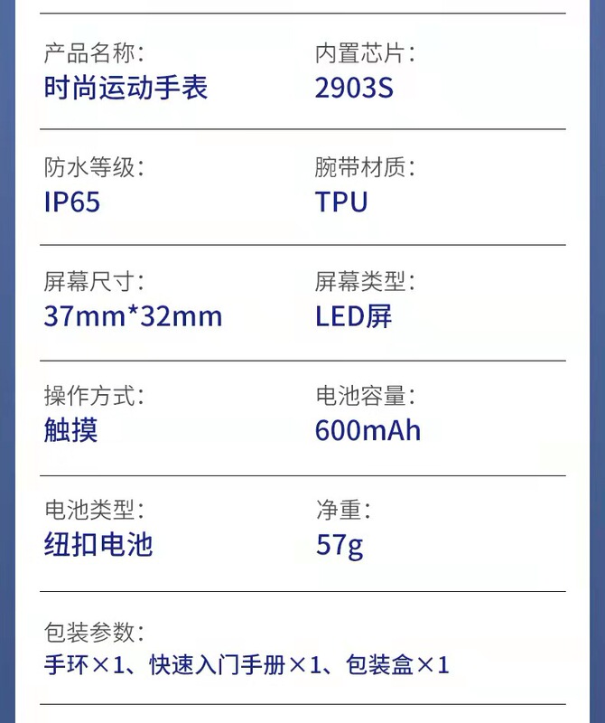 - 特殊功能:時間日期星期計步運動抬碗顯示