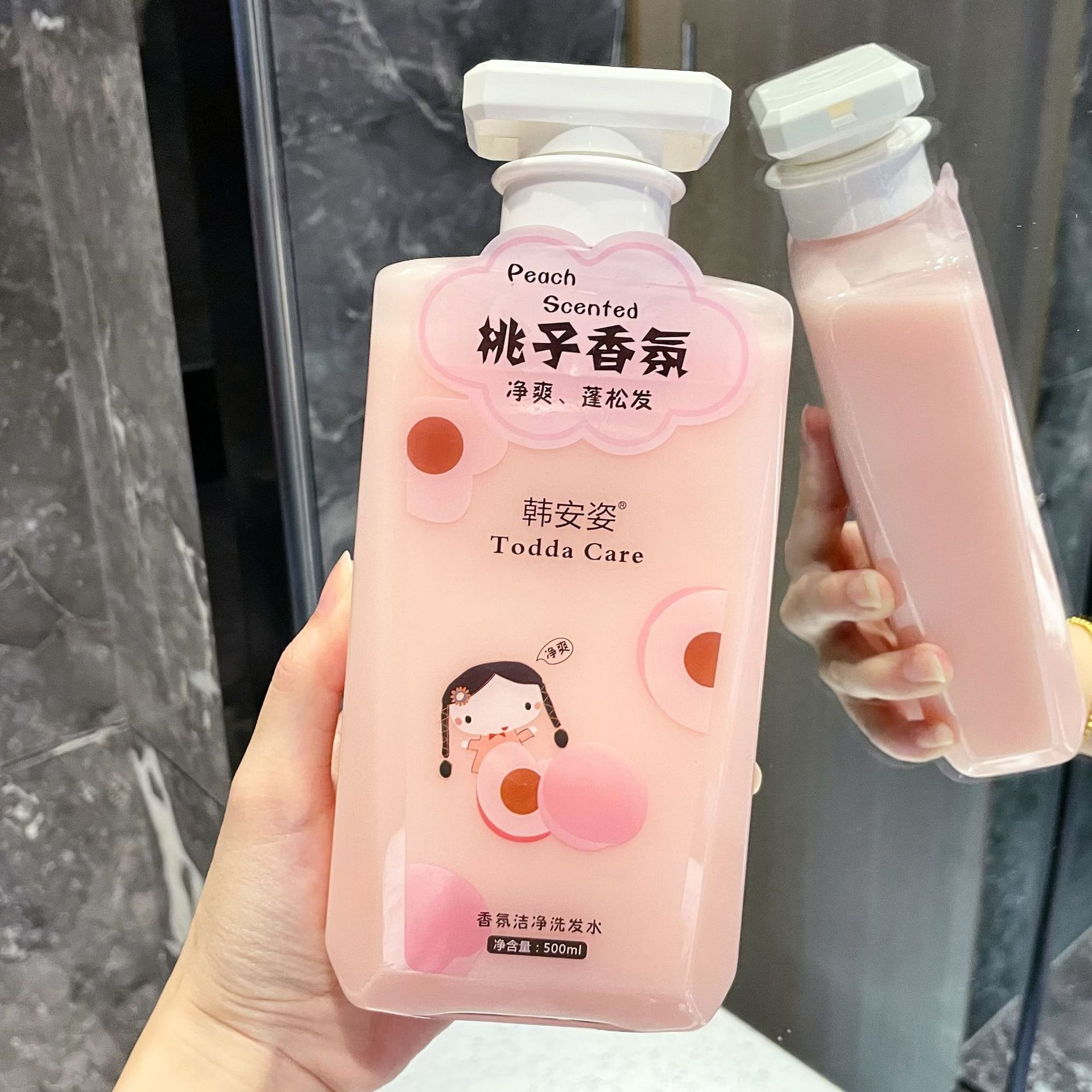 - Net content: peach shampoo 500ml