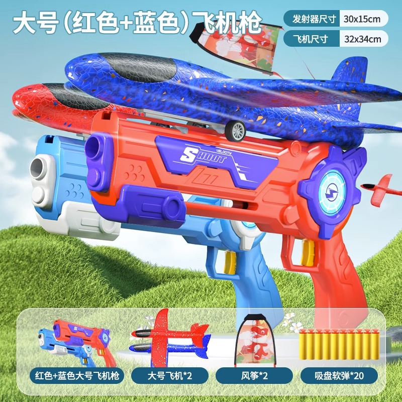 - Specifications: [Large Size] Blue Gun + Red Gun + 2 Planes + 2 Kites + 20 Soft Bullets