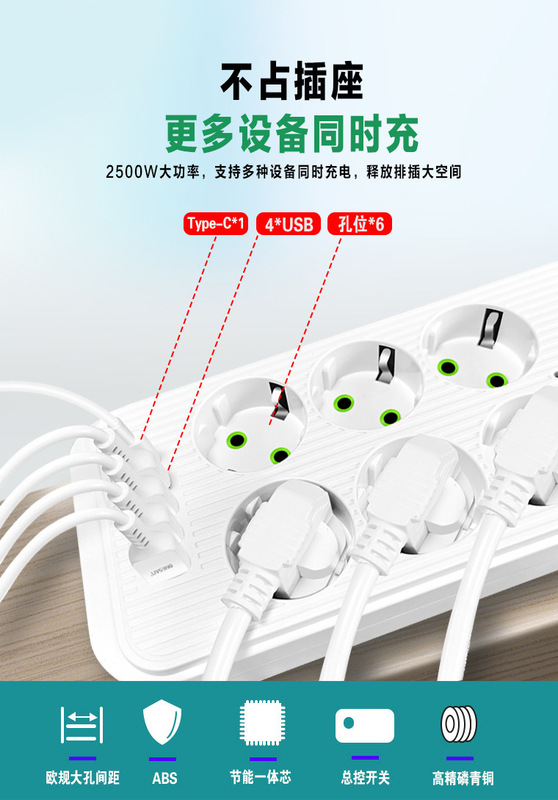 - Specifications and models: F06 European standard white 2 meters