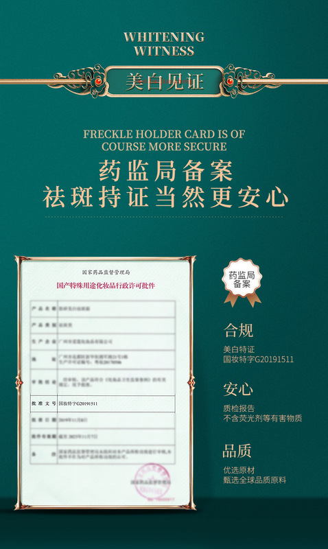 - Special purpose cosmetics certificate number: National cosmetics special character G20191511